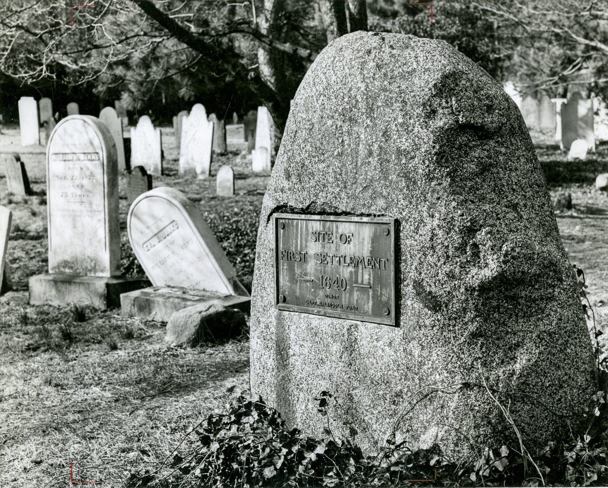 The stone monument for the site of the First Settlement of Greenwich in 1640.