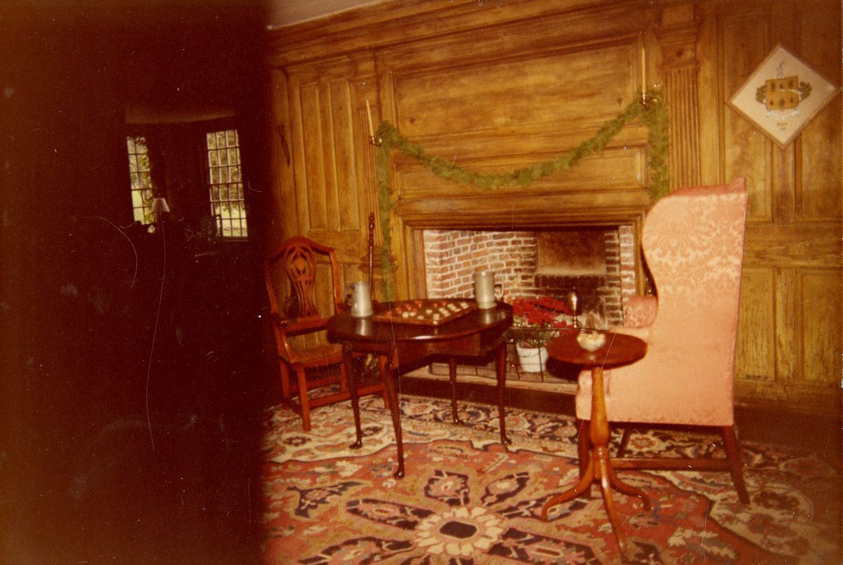 The sitting room of the Bush-Holley House with a pine garland over its fireplace during the Christmas Season.Collection