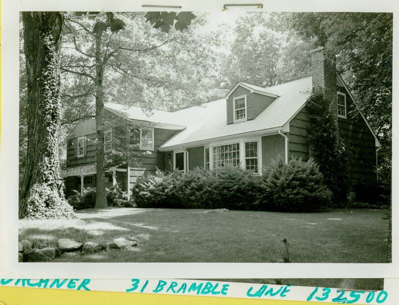 Split-level colonial house built in the 1950's with a small dormer and bay window viewed from its lawn.