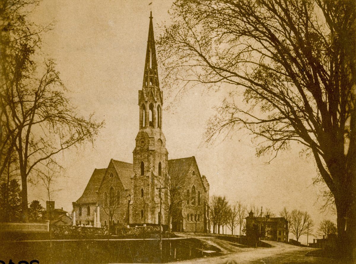 A view of the Second Congregational Church from East Putnam Avenue, looking east with the former Greenwich Academy visible in the background of the image.Collection
