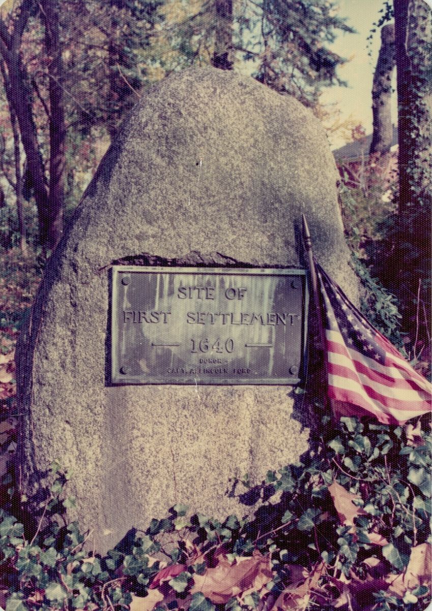 The stone monument for the site of the First Settlement of Greenwich in 1640.