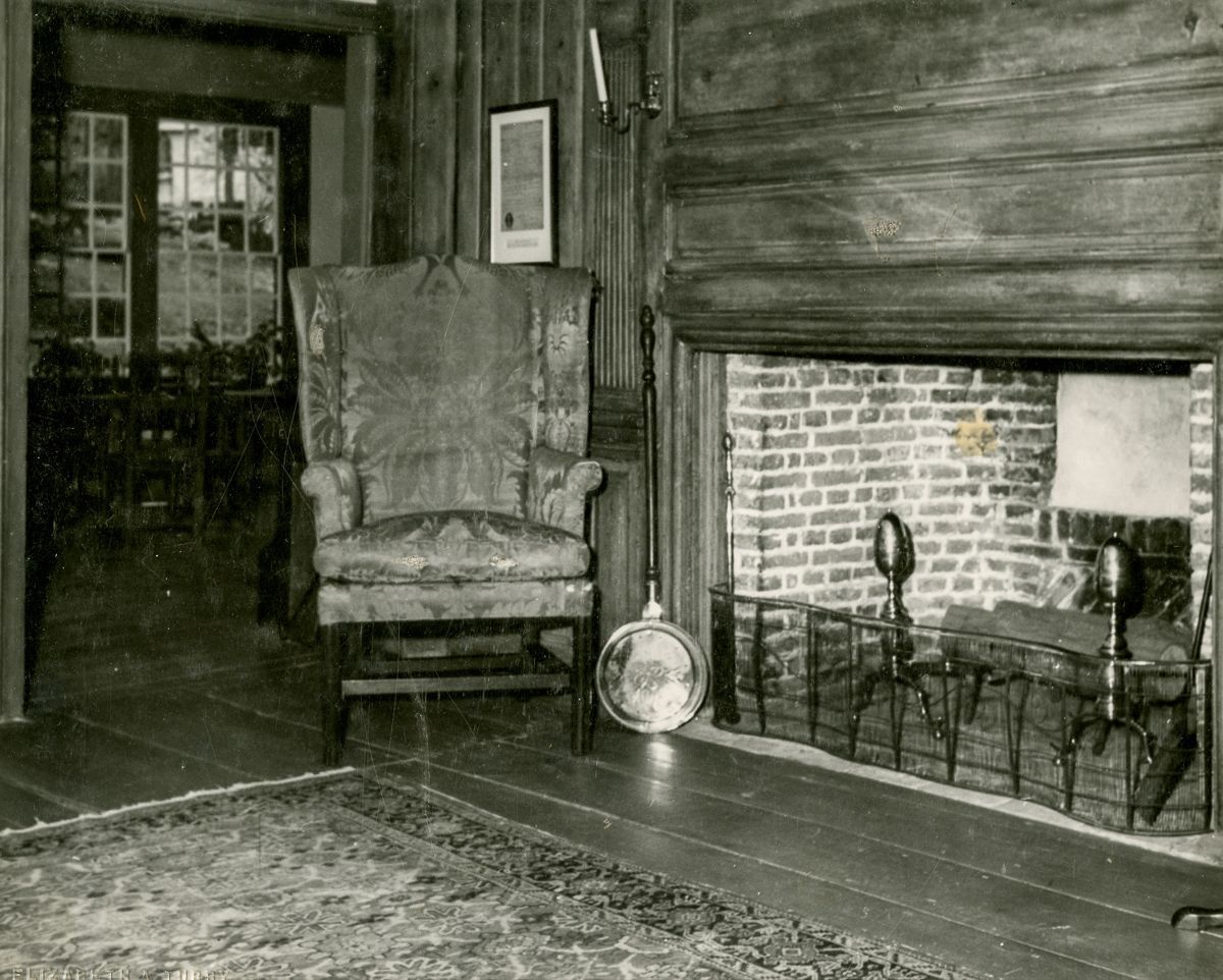 The fireplace of the parlor of the Bush-Holley House.