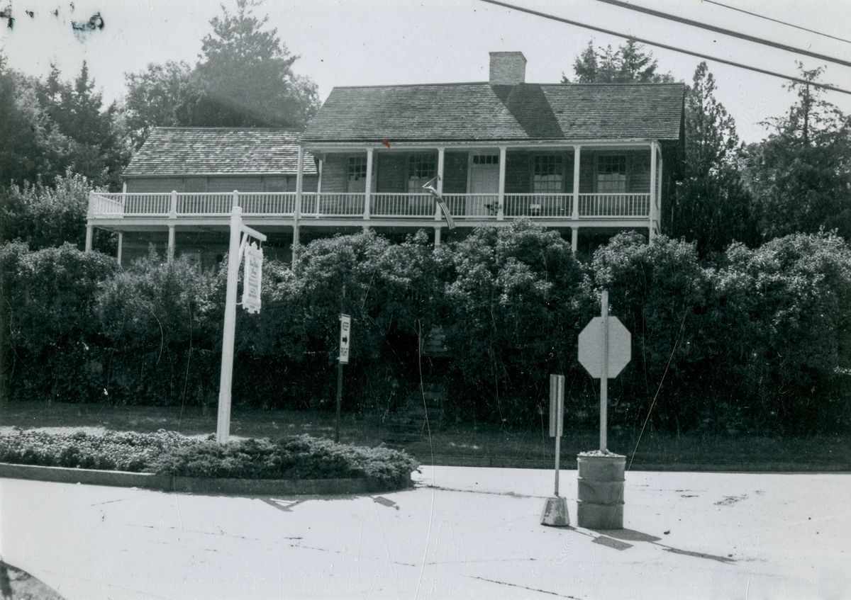 View of the front of the Bush-Holley House from the intersection of Strickland Road and River Road.