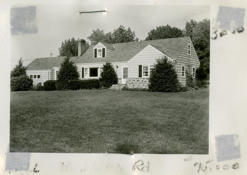 Two story house built in 1953 with a small dormer viewed from its lawn.