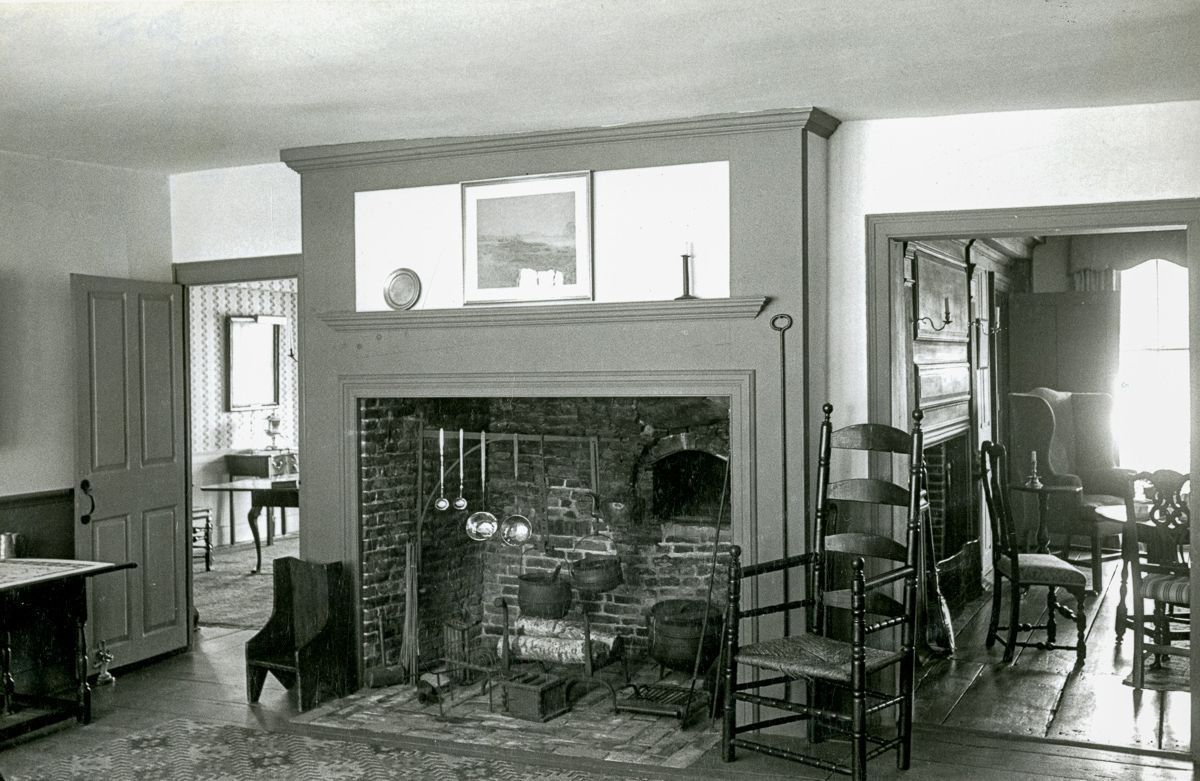 The fireplace in the original kitchen, now dining room of the Bush-Holley House.Collection