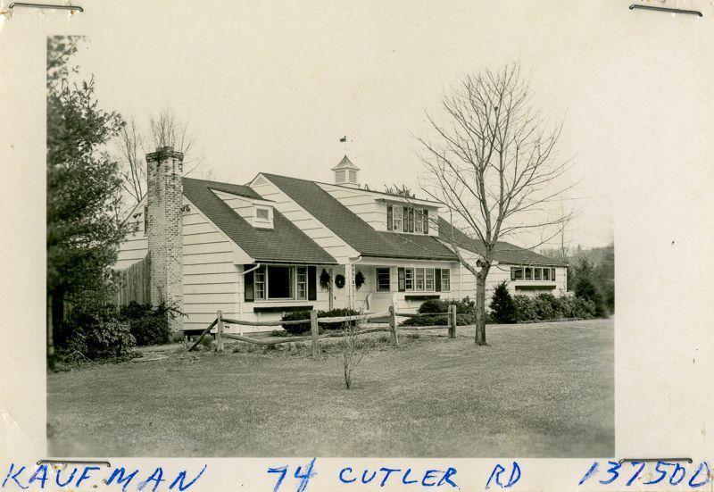 Colonial-style house built in 1955 and remodeled in 1967 viewed from its lawn.