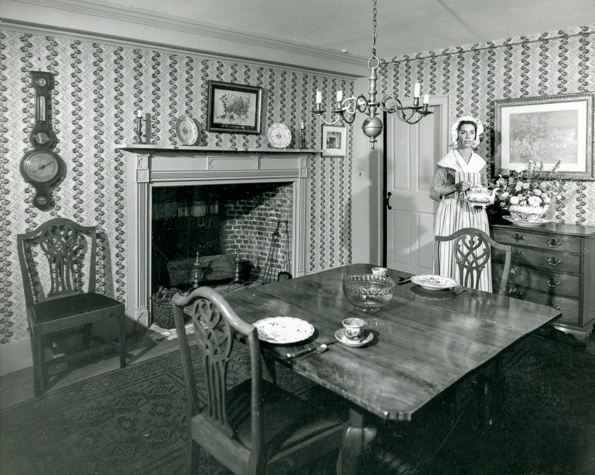 A Junior League guide in period costume in the dining room (now 'best bedroom') of the Bush-Holley House.Collection