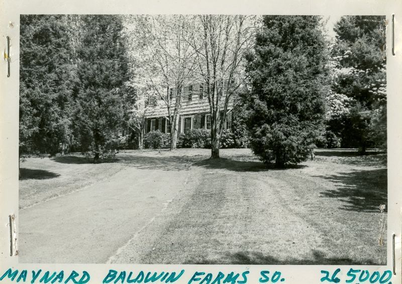 Colonial style, shingled house, partially obscured by trees, viewed from its driveway.