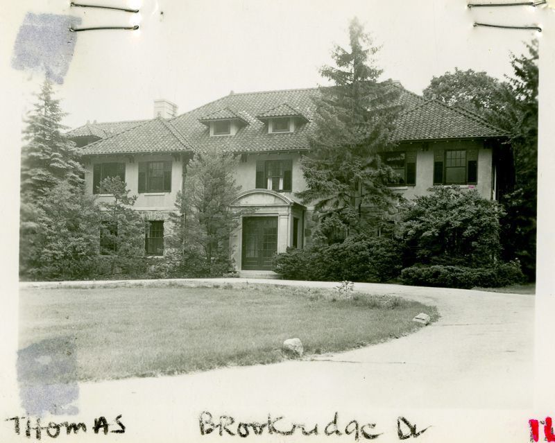 Mediterranean-style house built in the 1920's viewed from its driveway.