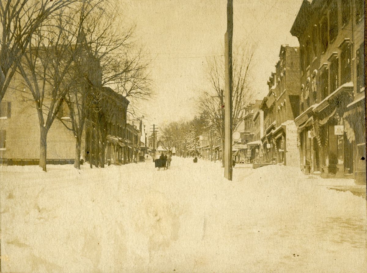 A horse-drawn sleigh heading up Greenwich Avenue in January 1904.