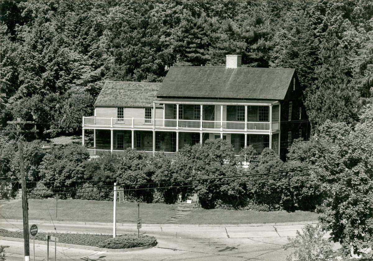 The exterior of Bush-Holley House, viewed from an elevated position.
