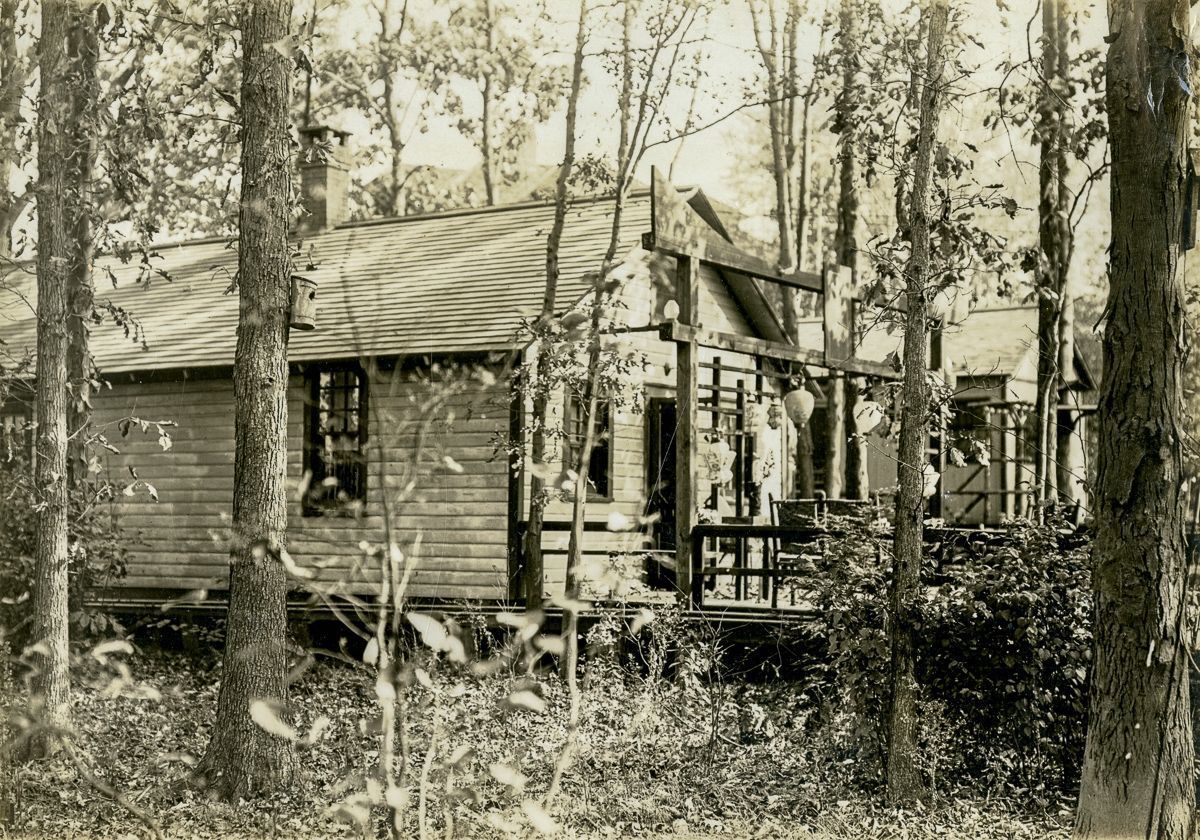 A rest cottage and torii (traditional Japanese gate commonly found at the entrance to Shinto shrines) in the area known as 'Little Japan' on the Agassiz Association's compound.Collection