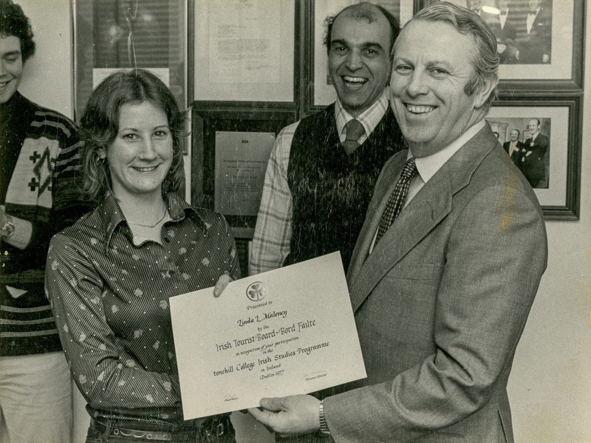 Linda L. Maloney being awarded for her participation in the Stonehill College Irish Studies Programme.Collection