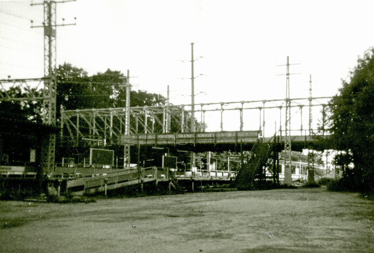 Looking east at the Riverside Avenue Bridge which pedestrians can use to cross the tracks to the other platform.Collection