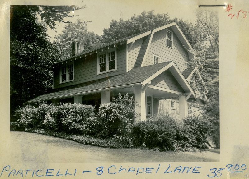 Dutch colonial-style house built in the mid-1920's with a gambrel roof viewed from its lawn.