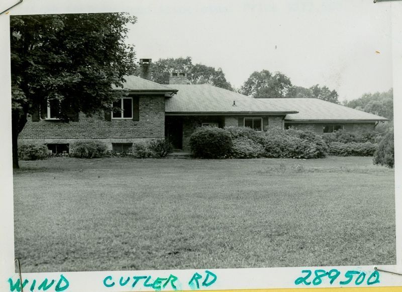 Contemporary ranch house built in 1956 with an addition from 1975 and brick walls viewed from its lawn.