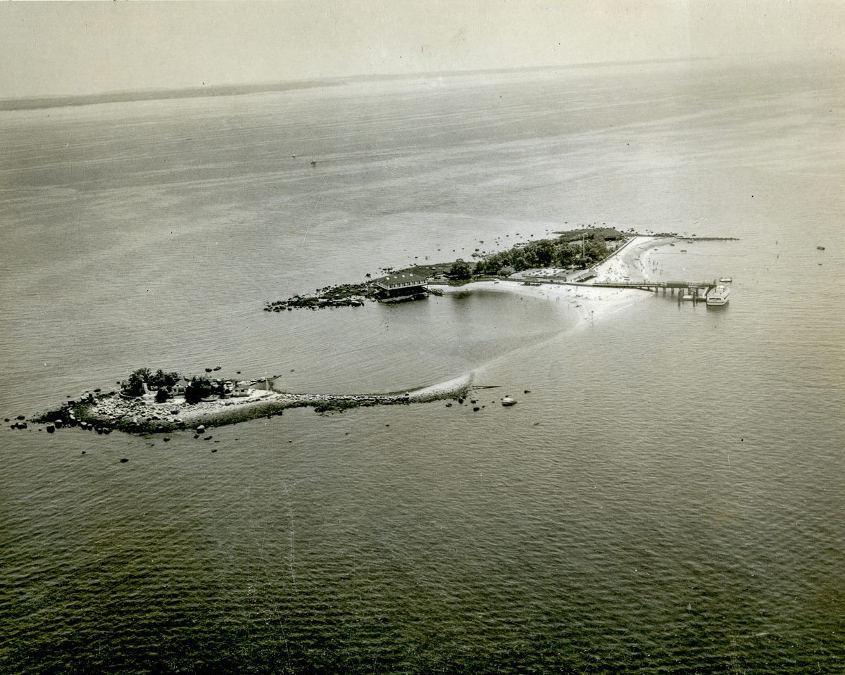 Aerial view of Island Beach and the neighboring small island, facing south.Collection