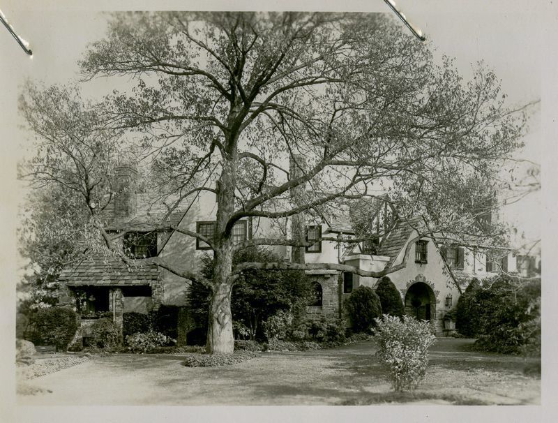 English-style house built in 1923 with a slate roof viewed from its lawn.