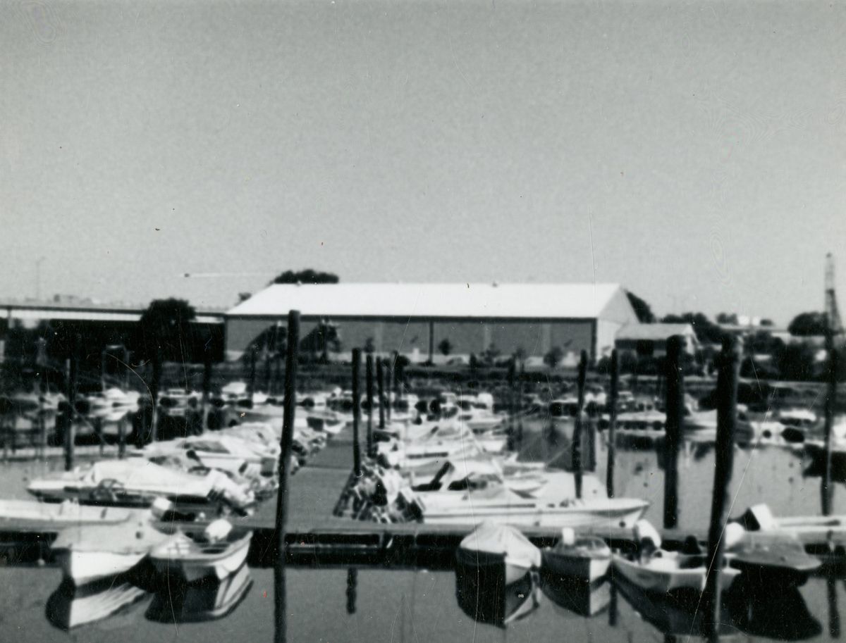 Boats moored at the Mianus River Boat & Yacht Club looking toward the Greenwich Racquet Club and Interstate 95.Collection