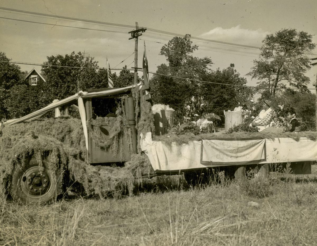 A black woman and child sitting on a float that depicts a cotton field; the float was for the United Daughters of the Confederacy's contribution of the Connecticut Tercentenary in 1935.Collection