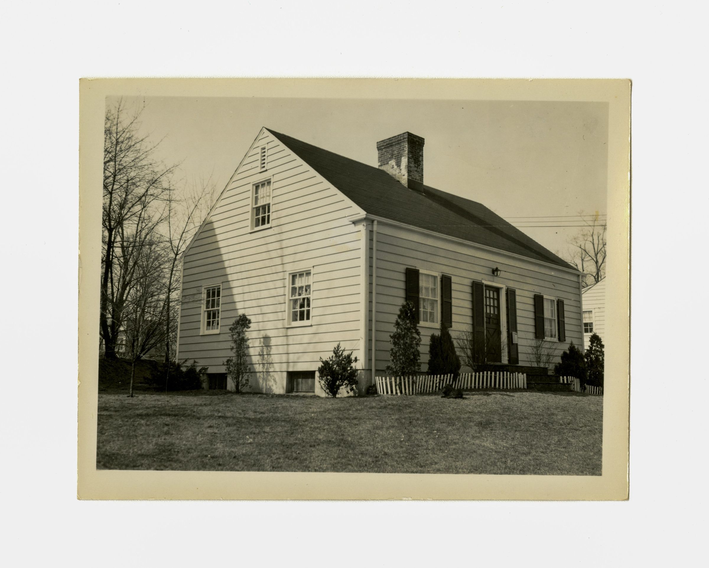 A two story clapboard house.