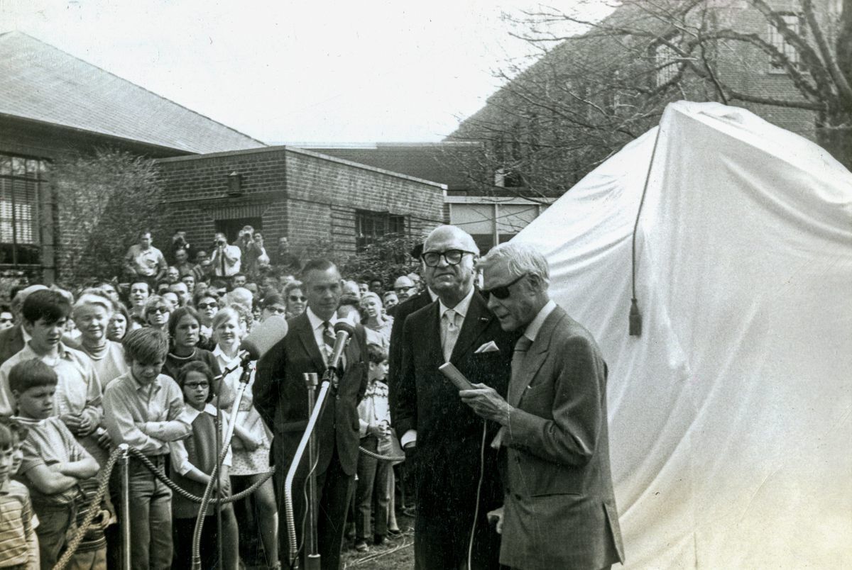 Edward VIII, Duke of Windsor at the unveiling of a statue by French sculptor Antoine Poncet, a gift to Electrolux from Nathan Cummings a founder of Consolidated Foods, the parent company of Electrolux.Collection