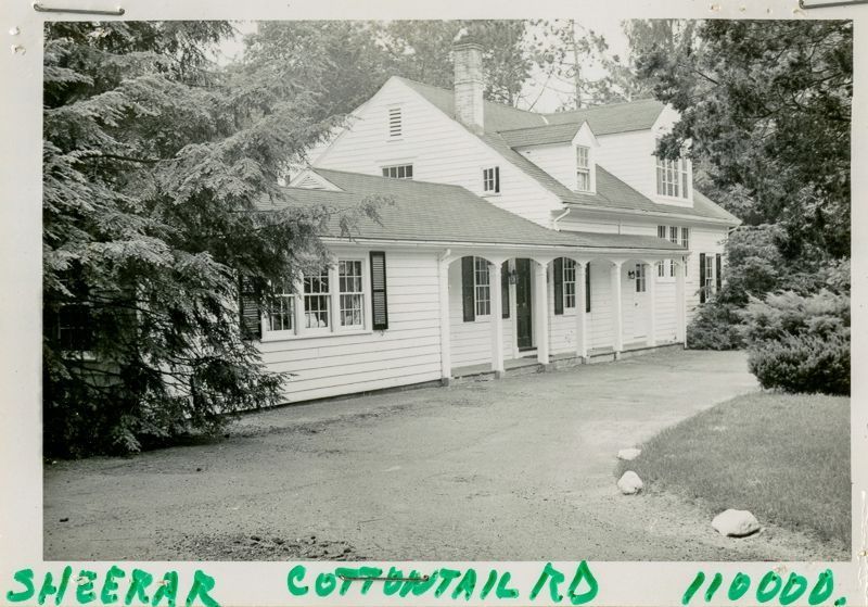 Colonial-style house built in 1850 and remodeled in 1914 and 1961 with two dormers viewed from its driveway.Collection