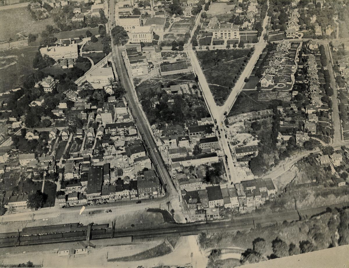 Aerial view looking north up Greenwich Avenue from above Greenwich Train Station.Collection
