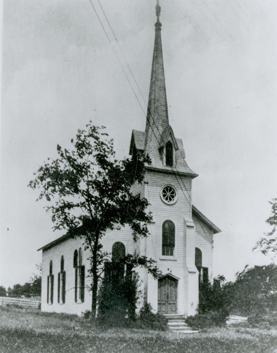 A view of the front and east-side of the First Church of Round Hill prior to its 1930's remodeling.Collection