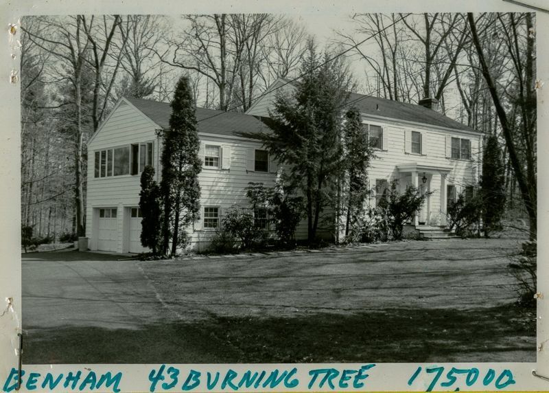 Two story house built in 1961 with a two door garage viewed from its driveway.