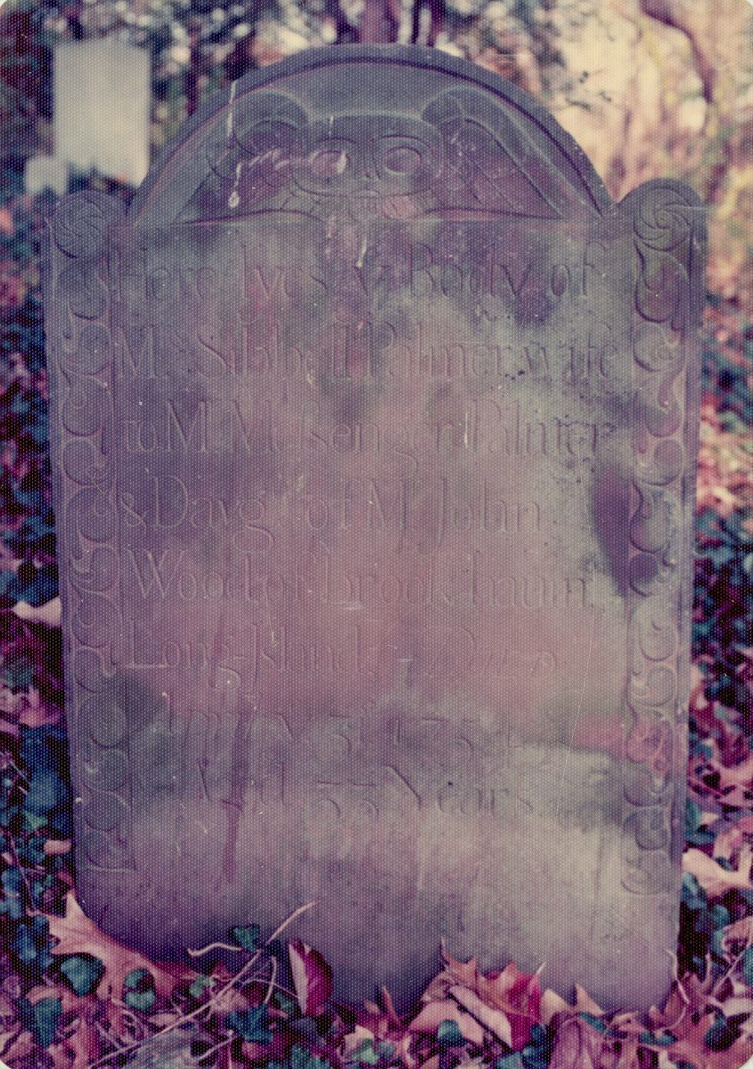 The gravestone of Sibbell Palmer decorated with a winged skull.