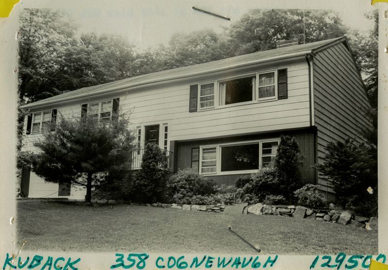 Raised ranch built circa 1964 viewed from its lawn.