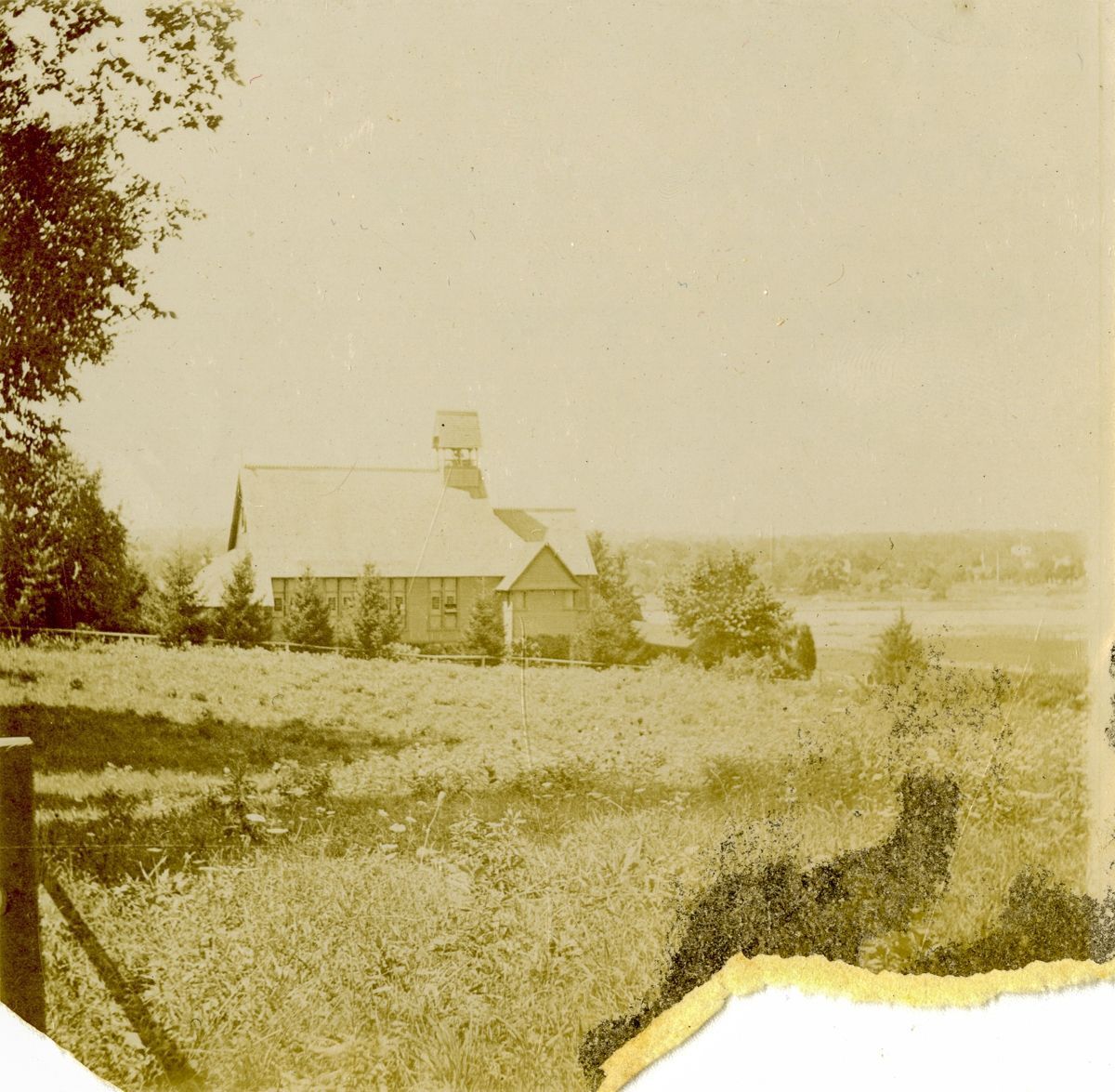 A view of the original chapel of Saint Paul's Episcopal Church, built in 1876, with Cos Cob Harbor visible in the background.Collection
