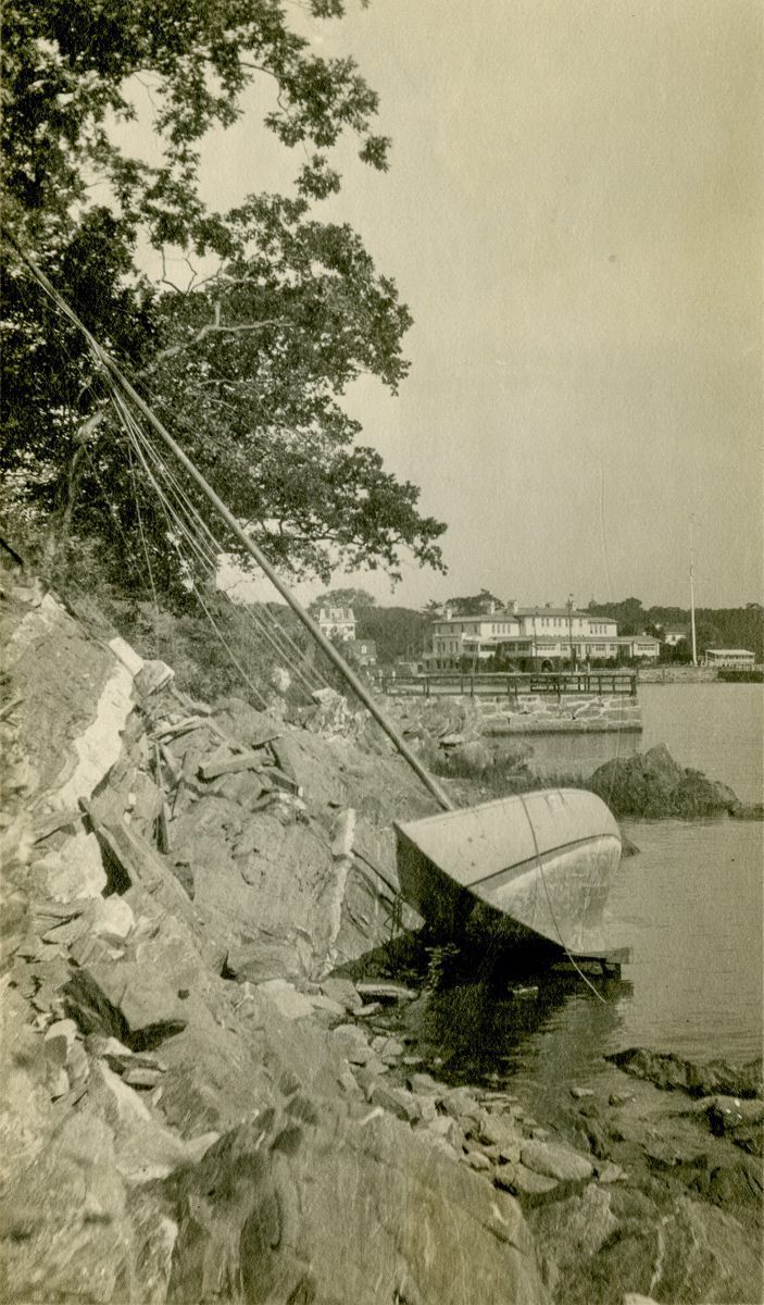 A sailboat beached on the rocky coast of Round Island.