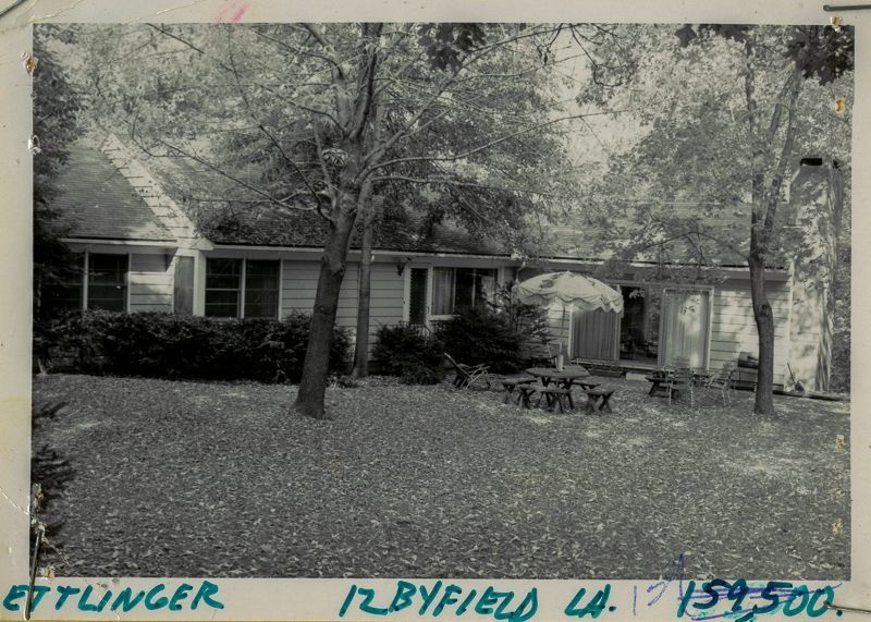 Ranch house built in 1955 with outdoor furniture on its lawn.
