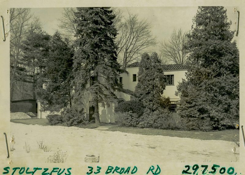 Mediterranean-style house with a tile roof built circa 1925 viewed from its lawn.