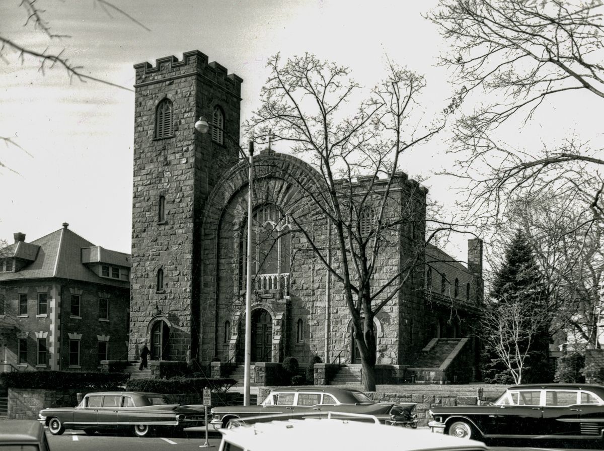 A view of the front of St. Mary Church from Greenwich Avenue.