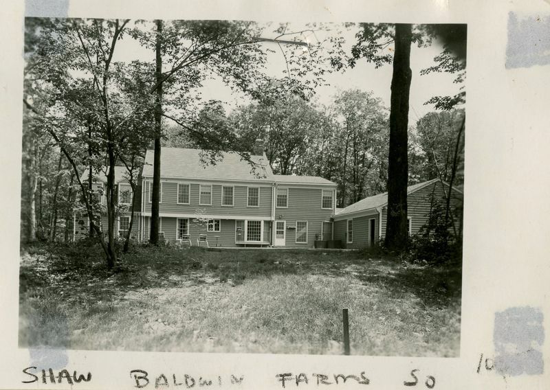 Two story Colonial-style clapboard house built in 1965 viewed from its lawn.