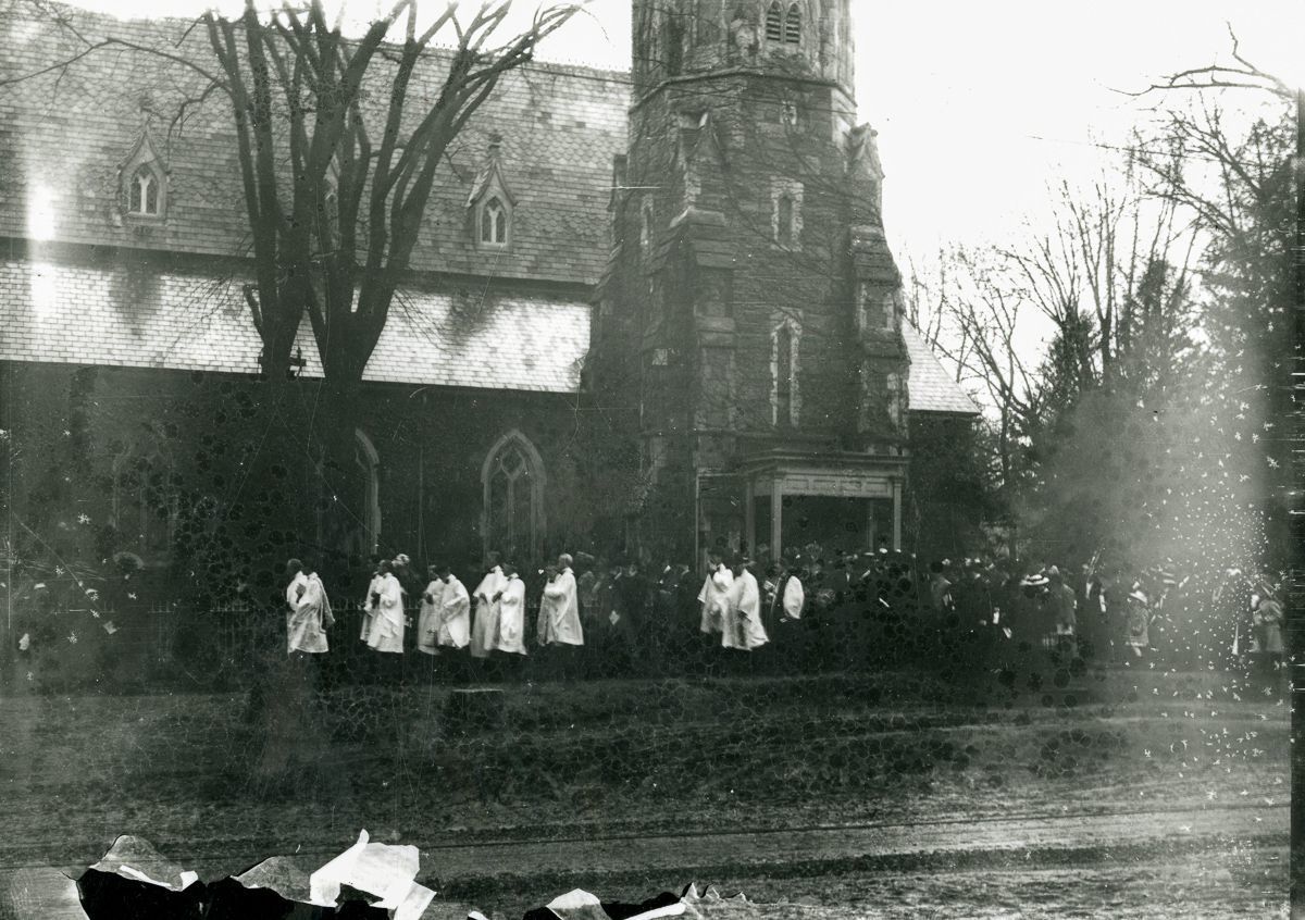 Members of the choir of Christ Church in a procession outside the main building.Collection