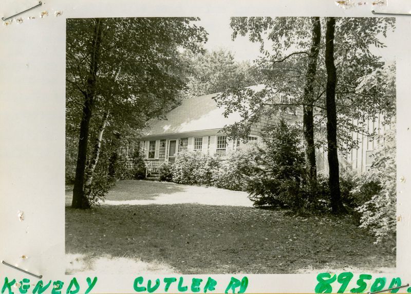 Cape Cod house built in 1963 with shingle siding viewed from its lawn.