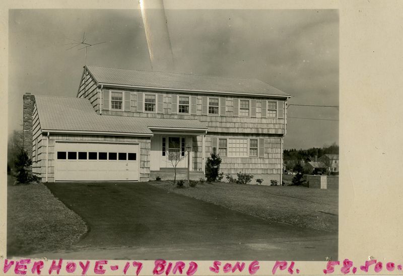 Colonial-style shingled house built in 1964 with a garage viewed from the street.