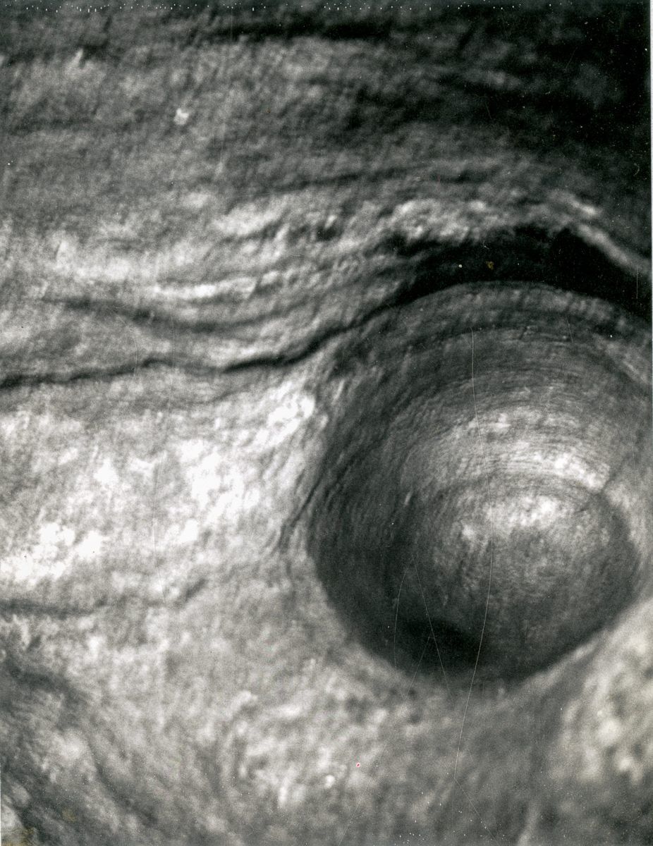Close-up image of what is labeled as an "Indian Mill," or a hollow in a stone used for grinding down maize and other ingredients for food.Collection