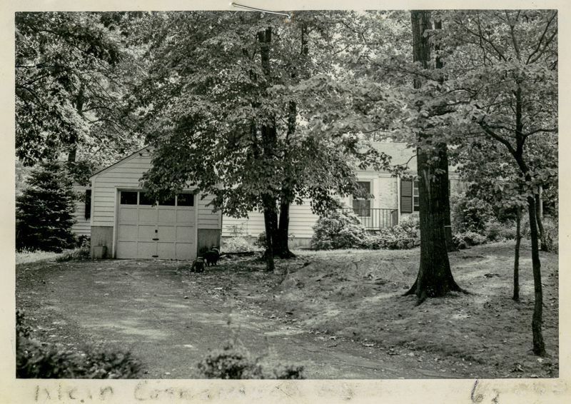 Ranch house built in 1947 with an addition from 1953 viewed from its driveway.