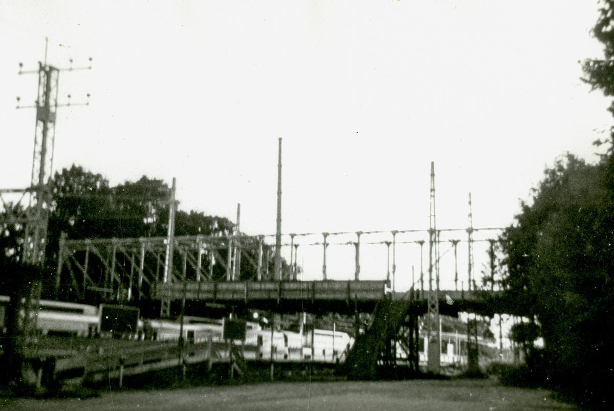 Looking east at the Riverside Avenue Bridge which pedestrians can use to cross the tracks to the other platform.Collection
