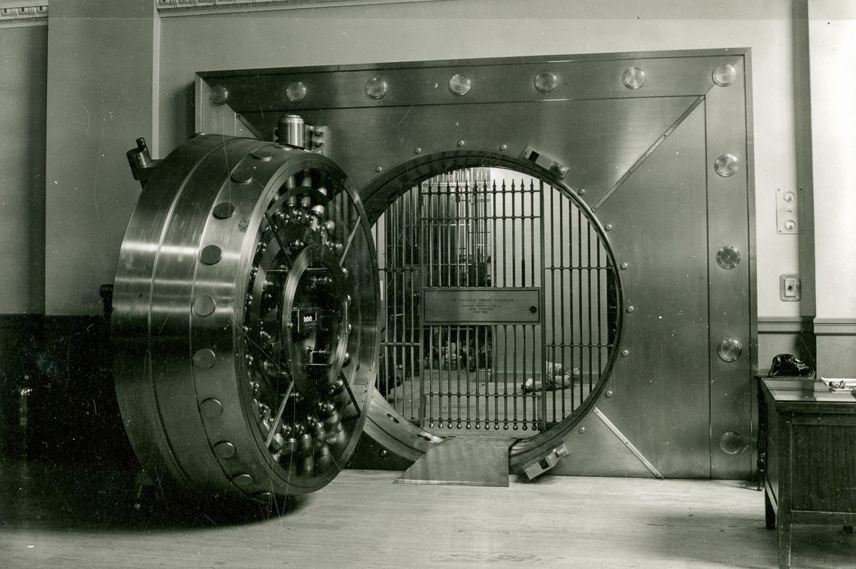 View of the Putnam Trust Company's vault with the vault door open.Collection