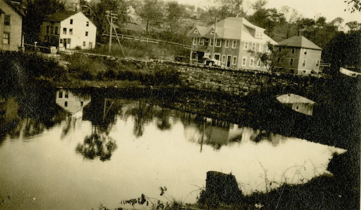 A view looking south from the west bank of the Mianus River of the North Mianus Bridge in an area formerly referred to as Dumpling Pond.Collection