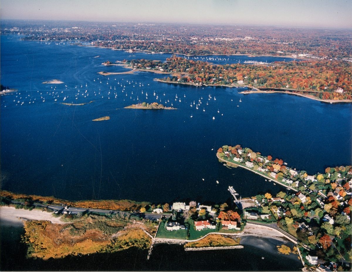 Aerial view, looking west, of part of Old Greenwich leading into Greenwich Point with Riverside in the background.Collection