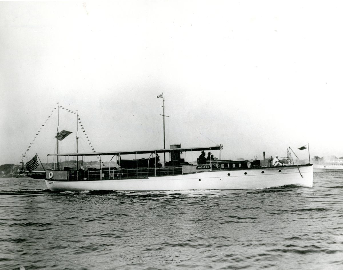 The "Antares," a boat built by Luder's Marine Construction Company for Morgan J. Bailey in 1910 sailing in the Sound.Collection