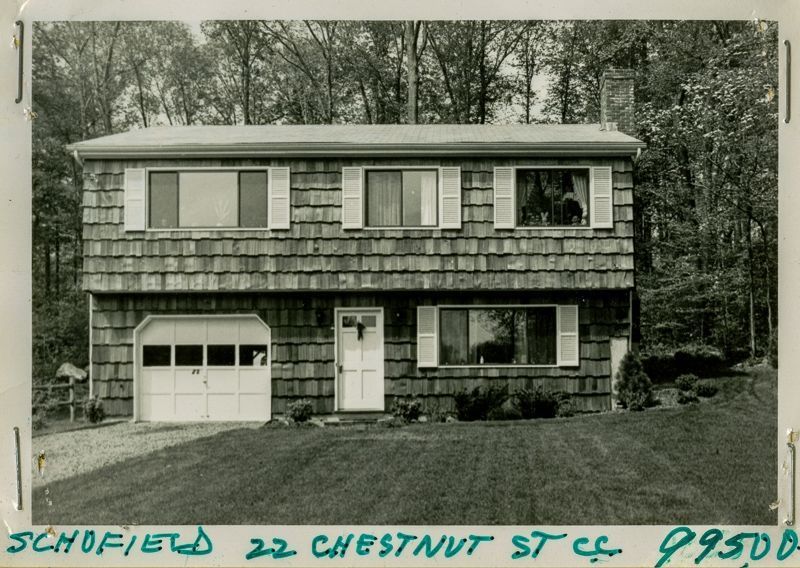 Raised ranch built in 1975 with shingle siding viewed from its lawn.