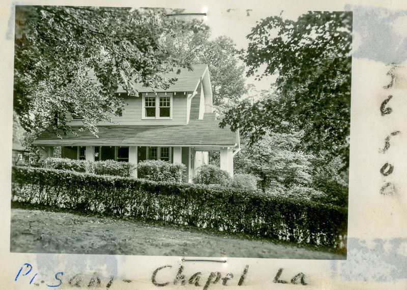 Dutch colonial-style house built in the mid-1920's with a gambrel roof viewed from its lawn.